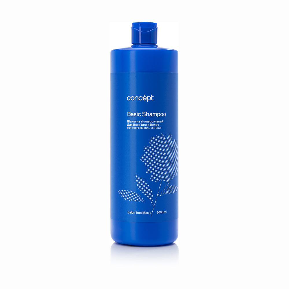 Универсальный профессиональный Шампунь универсальный для всех типов волос Concept Salon Total Basic, 1000 мл, разработанный специально для ежедневной салонной работы с волосами любого типа. Шампунь легко распенивается, деликатно и мягко очищает волосы и кожу головы. Протеины пшеницы и риса придают волосам блеск и гибкость, предотвращают ломкость и утолщают их структуру, сглаживают поверхность волоса и снижают его электризуемость.