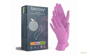 Перчатки розовые нитриловые смотровые нестерильные текстурированные на пальцах BENOVY