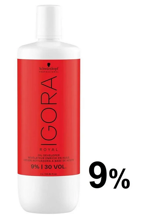Лосьон-окислитель 9 % (30 Vol) предназначен для использования с перманентными крем-красками линии Igora Royal. Концентрация 9 % применяется для осветления до 2–3 уровней в зависимости от исходной базы и выбранного оттенка, а также для получения более выраженного и интенсивного результата окрашивания. Формула на масляной основе способствует более равномерному распределению смеси по волосам и обеспечивает контролируемый процесс раскрытия кутикулы во время химической реакции. Окислитель активирует пигмент красителя, помогает добиться стойкого цвета и надежного покрытия седых волос. Подходит для профессионального применения в салонах красоты. Использовать строго в соответствии с инструкцией к красителю и с соблюдением мер предосторожности.