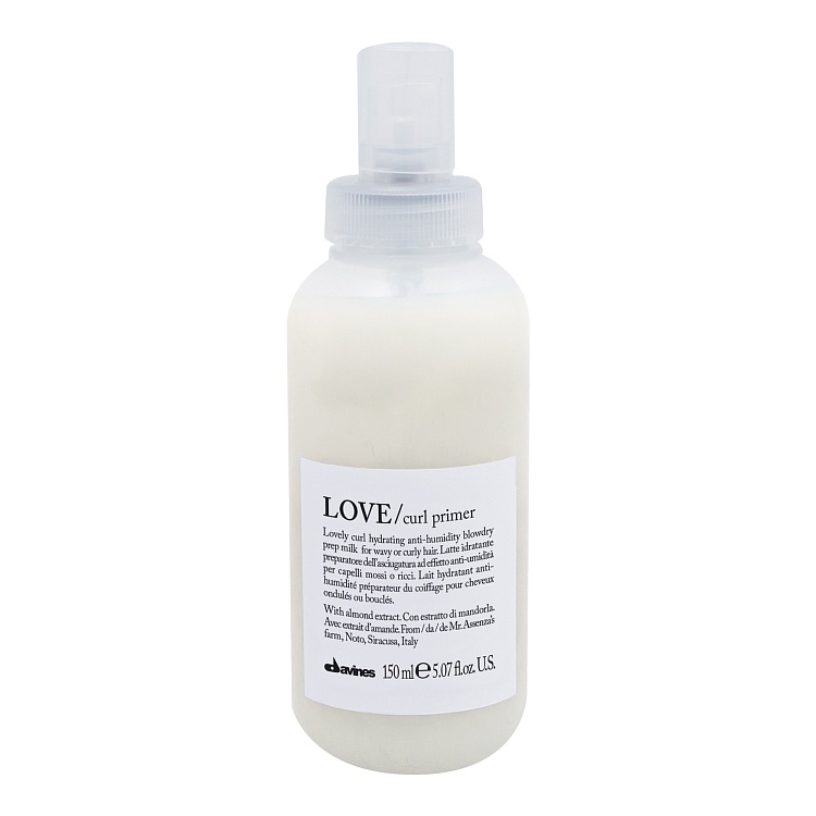 Увлажняющее молочко для волнистых и кудрявых волос для подготовки к горячей укладке. Облегчает процесс расчесывания, разделяет локоны. Благодаря влагостойкому эффекту помогает поддерживать эластичность и четко очерченную форму локонов без пересушивания и утяжеления. Обладает термозащитным действием. С экстрактом миндаля с фермы синьора Карло Ассенца из Ното, провинция Сиракузы. Применение: нанести 10-20 доз продукта на влажные или подсушенные полотенцем волосы после использования LOVE/шампуня для усиления завитка. Не смывать. Перейти к желаемому стайлингу.