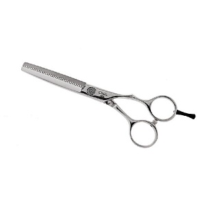 Ручка: Модель имеет полуэргономичную ручку с 2мя кольцами для пальцев и расположенными в одной плоскости. Минимальный диаметр верхнего кольца позволяет более стабильно фиксировать ножницы в руке. Модель является универсальной и максимально подходит мастерам с опытом.