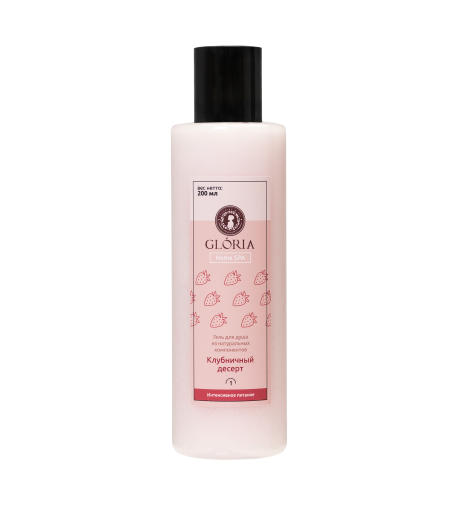 Гель для душа «Клубничный десерт» от GLORIA входит в линейку средств для деликатного ежедневного очищения кожи во время домашнего ухода.