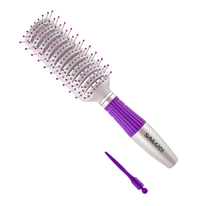 Щетка Salon Professional 98070TER Продувная. зубцы - пластиковые штифты. 9 рядов. прорезиненная ручка. вставка для отделения прядей. L 255 мм. Назначение: Для ухода за волосами Материал инструментов: Пластик Длина, см: 24 Производитель: Salon Professional Гарантия: Ограничено физическим износом