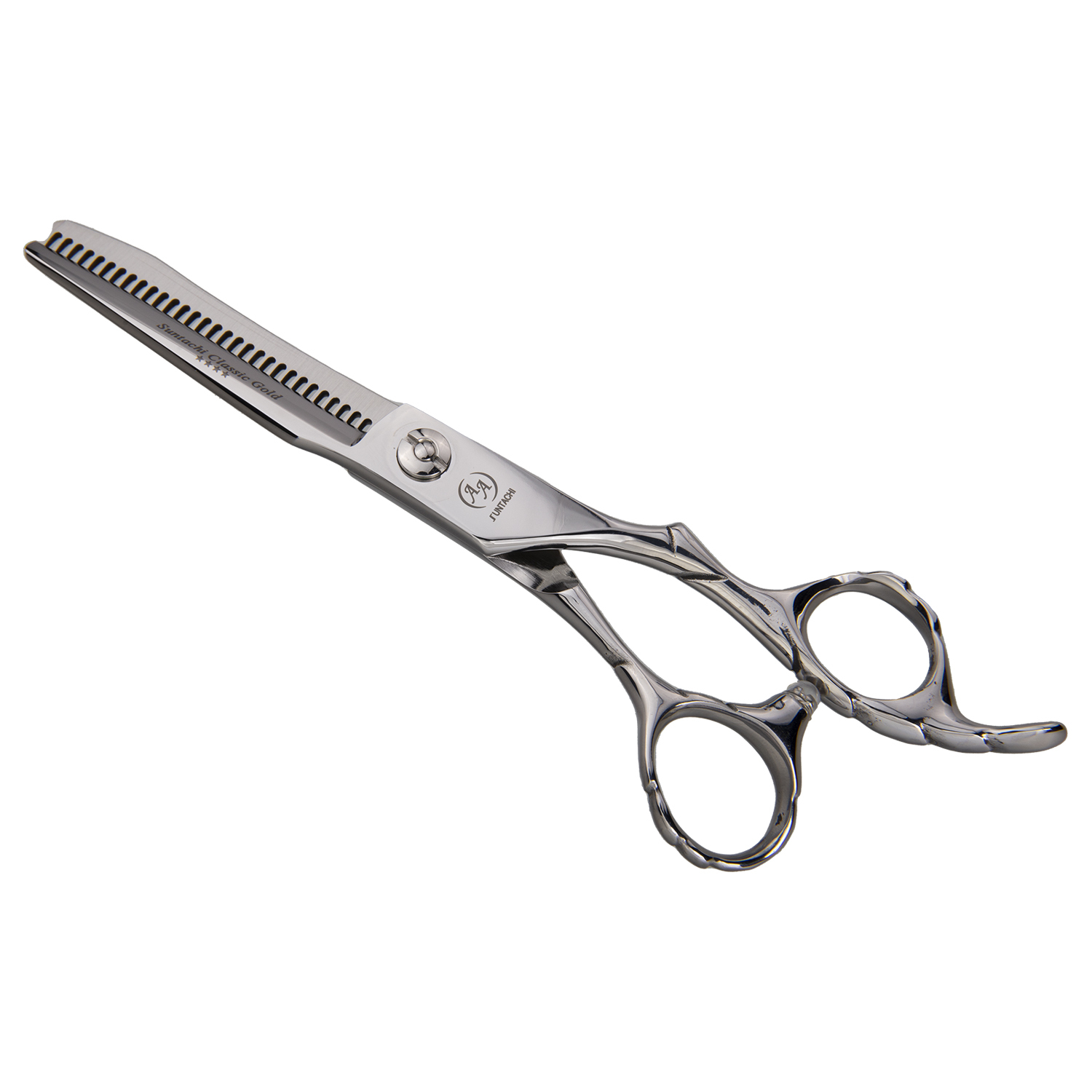 Ручка: Модель имеет эксклюзивную ручку с уникальной эргономикой и кольцами в двух различных плоскостях. Кольца ручек имеют анатомическую форму и изгиб для комфортного размещения в руке мастера. Ножницы с этой ручкой идеально ложатся в руку и являются настоящим продолжением кисти мастера, ножницы можно ставить под любым углом и производить срезы, кисть руки и предплечье при этом не напрягаются.