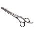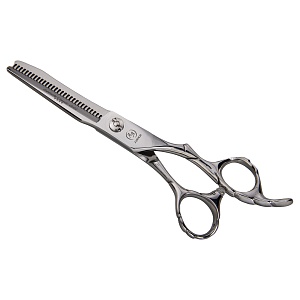 Виды срезов и техника: Саблевидный вид сплошного лезвия в комбинации с 27-ю с-образными зубцами, оснащенными 2-мя микро зубчиками на каждом, позволяют быстро и мягко снять объём, не создавая контрастного перехода с проработанной зоны в нетронутую. Тем самым после проработки возникает эффект гармоничного и естественного вида завершенной стрижки, волосы правильно ложатся, стрижка долго сохраняет форму. Более толстые зубчики позволяют увеличить скорость работ. Подходит как для женских техник, так и для мужских. Филировочное полотно имеет оригинальную форму с расширением к концу. Это расширение придает концам дополнительный вес и инерцию.