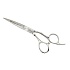 Ручка: Модель имеет удобную эргономичную ручку со стандартными размерами колец и повернутое нижнее кольцо к большому пальцу. Верхнее имеет литой упор для мизинца и разделительный выступ для пальцев. Это позволяет более стабильно и комфортно удерживать ножницы при работе разными техниками и при любом положении кисти руки. Ручка и полотно максимально сбалансированы.